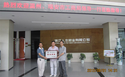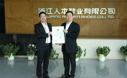 20174月16日,瑞安市市場監督管理局楊國良副局長專程來到浙江人本鞋業有限公司,向該公司頒發全國"守合同重信用"單位獎牌。近些年來,浙江人本鞋業有限公司重視企業誠信建設,在經營中一直信守"誠信經營、...